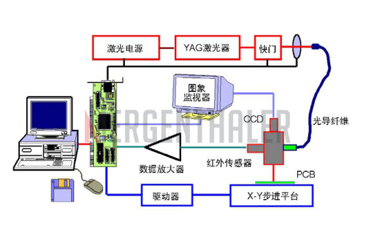 为了监测和控制焊锡的质量,先进的激光焊锡设备配备有实时温度检测单元,将焊点的温度通过红外传感器实时检测出来,模数转换送入控制计算机,通过温度的变化情况监测焊点的形成过程,或实时改变激光功率控制焊点的形成和质量。温度上升过快时,可立即切断激光输出,保证不烧毁器件的引线。图象监视器可以观察激光与引线的为位置情况以及焊接的过程,可对焊锡过程录像或拍照。激光器的输出功率由控制计算机设定并可程序控制,保证加热能量的精确性。