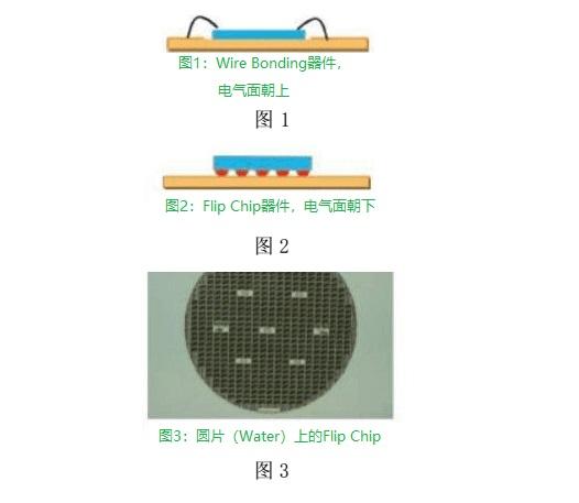 事实上,倒装芯片之所以被称为“倒装”,是因为与传统的金属线键合连接方式相比(Wire Bonding)这与激光球种植后的过程有关。传统的芯片电表面通过金属线键合连接到基板上(图1),而倒置芯片的电表面向下(图2),相当于将前者翻转,因此称为“倒置芯片”。在圆圈中(Wafer)上芯片植球后(图3),需要翻转,送到贴片机上方便贴装,也因为这个翻转过程被称为“倒装芯片”。