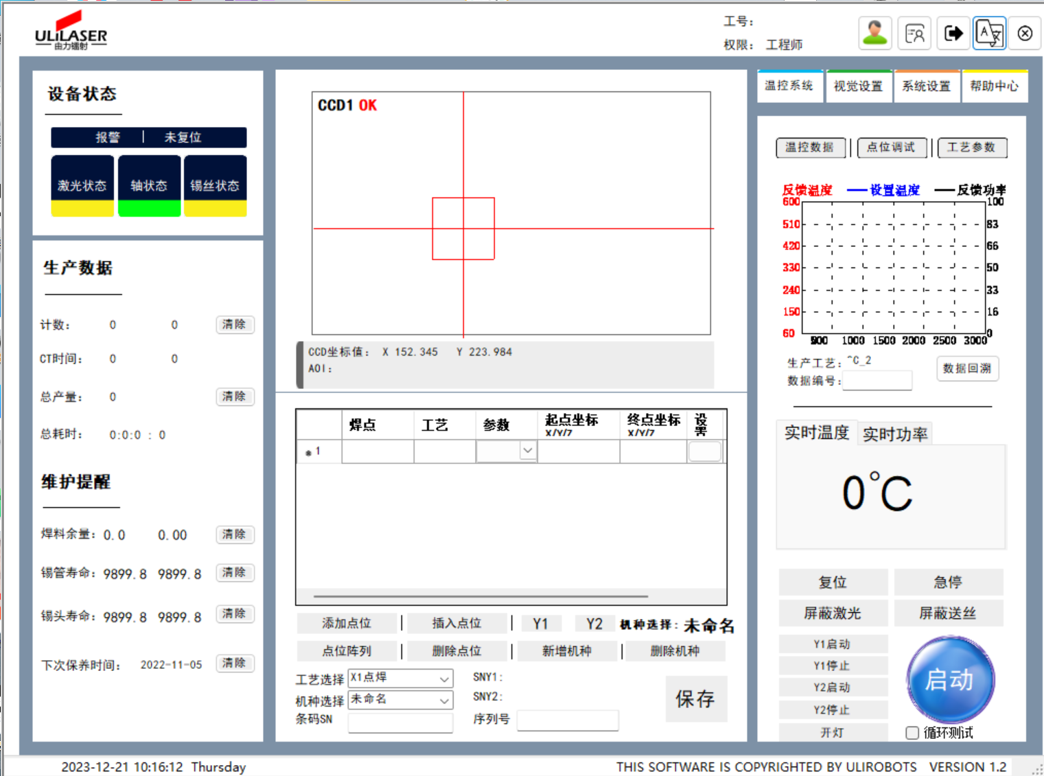 ULILASER激光焊接系统由多轴伺服模块、实时温度反馈系统、CCD同轴定位系统和半导体激光组成。支持导入多种格式文件,自主开发智能软焊接软件。原有的PID在线温度调节反馈系统可以有效控制恒温焊接,保证良好的焊接率和精度。该产品应用广泛,可用于在线生产或独立加工。具有以下特点: