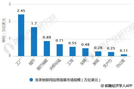 物联网应用场景分为工厂、城市、医疗保健、外部环境、工地、车辆、家庭、人类生产力、办公室九类, 其中智慧家庭的市场规模将达2750亿美元。