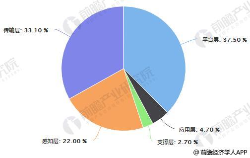 移动互联向万物互联的扩展浪潮,将使我国创造出相比于互联网更大的市场空间和产业机遇。广东省占比超过40%,其中支撑层、感知层、传输层、平台层,以及应用层分别占比2.7%、22.0%、33.1%、37.5%和4.7%。而物联网感知层、传输层参与厂商众多,成为产业中竞争最为激烈的领域。