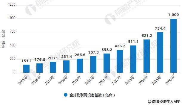 2015-2030年全球物联网设备基数统计及增长情况预测