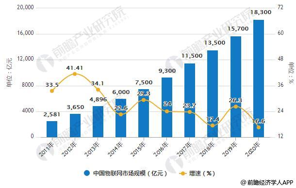 2011-2020年中国物联网市场规模统计及增长情况预测