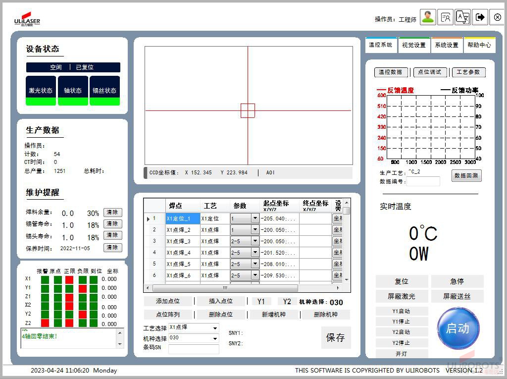 除了基础焊接控制,ULiLASER 激光焊锡软件还具备强大的工艺管理与数据交互能力,适配现代智能工厂需求: